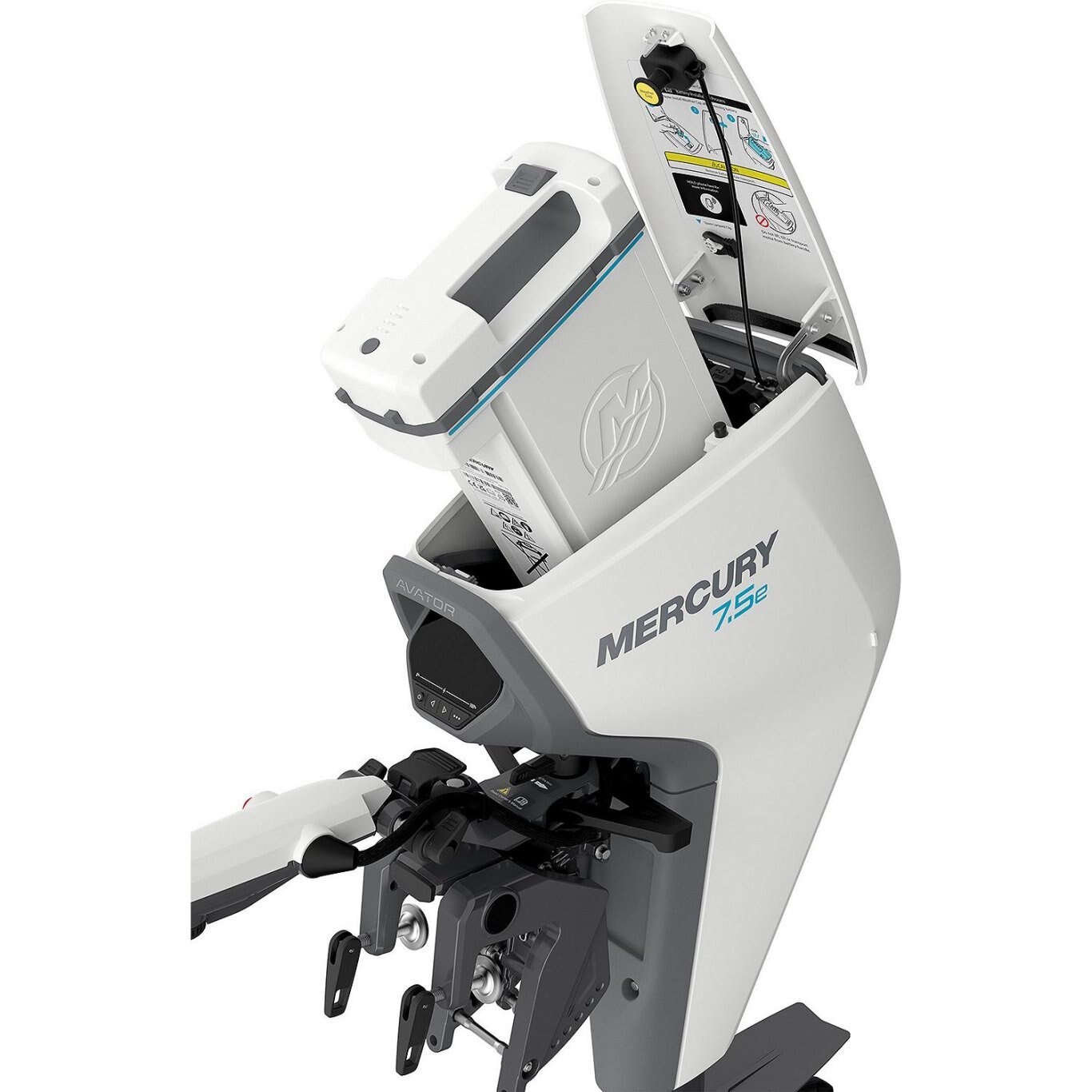Discover a new, sustainable way to explore the water with a Mercury Avator 7.5e electric outboard. Available in a portable tiller configuration or with remote throttle controls, the 7.5e outboard can be paired with a variety of small boats, including jon boats, inflatables and small fishing boats, or as secondary power on a sailboat. It makes going boating easy. Just slide the quick-connect battery in place, turn it on and you’re on your way. With advanced lithium-ion battery technology and a powerful electric motor, you’ll enjoy smooth, quiet, efficient performance.
